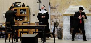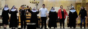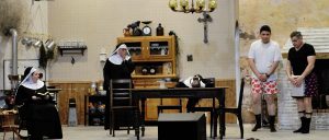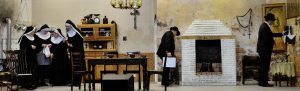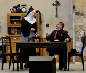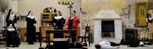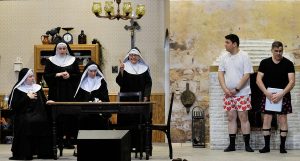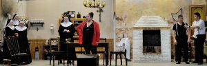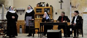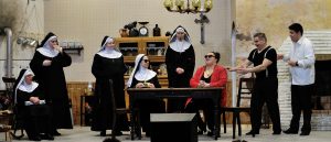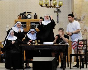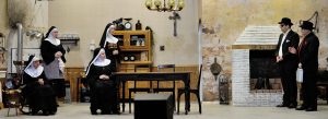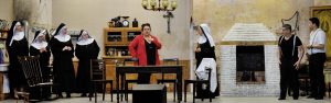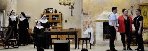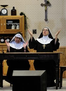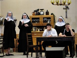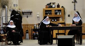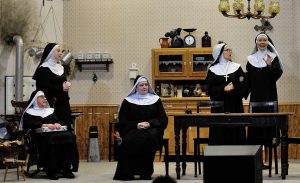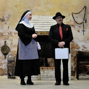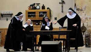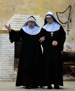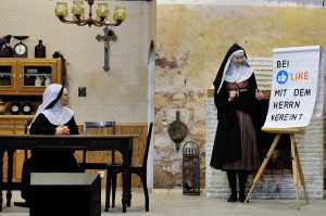Am Kloster nagt der Zahn der Zeit; alles verfällt, nach einem Brand müsste dringend renoviert werden, die Heizung funktioniert nicht richtig und es gibt inzwischen mehr Nonnen als Kirchgänger. Die Schwestern langweilen sich und vertreiben sich die Zeit mit Pokerspielen um Hostien. Als zwei windige Gestalten, die sich als „Kloster-TÜV“ ausgeben, bei ihnen anklopfen, kommen wieder Bewegung und Tatendrang in das Kloster[1]leben. Sr. Sigisbalda entwirft die aberwitzigsten Ideen zur Rettung des Klosters, während Sr. Elisabeth die Stille und Besinnlichkeit früherer Tage herbeisehnt. Überhaupt werden manche Geheimnisse aufgedeckt, die eigentlich nicht für die Öffentlichkeit bestimmt waren. Und was steckt eigentlich in diesem geheimnisvollen Koffer, den die beiden Gesandten aus Rom nicht aus den Augen lassen…?